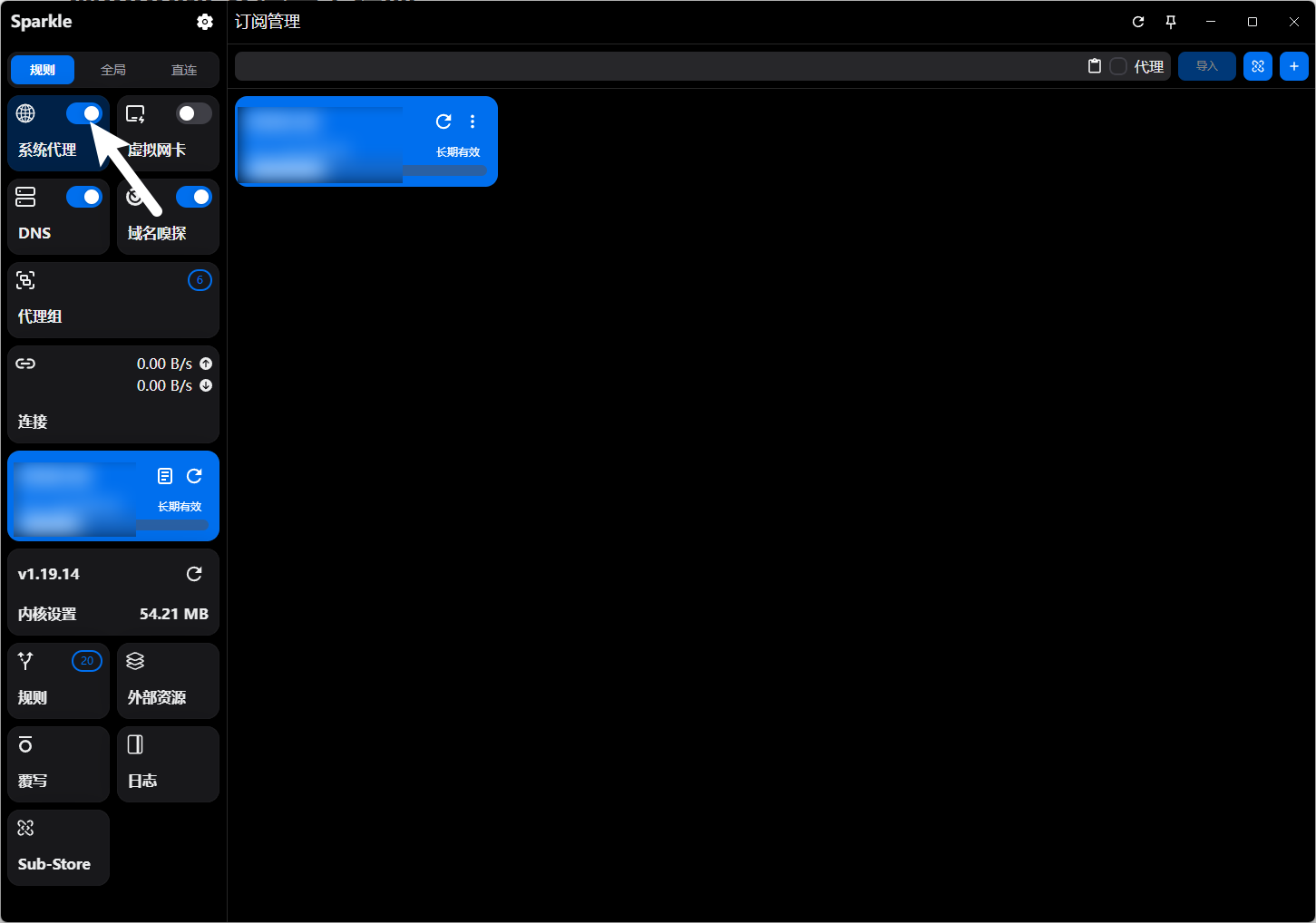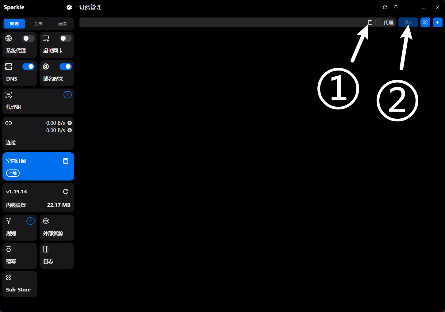 复制我提供的配置链接(注意是复制链接,而不是点开链接后网页中的内容),依次点击这两个按钮进行导入